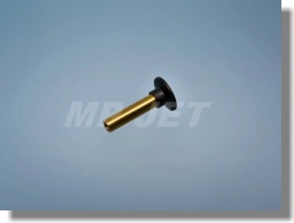 Trubkové ložisko kormidla s plastovou prírubou - určené na vlepenie do trupu. Príruba je vyrobená z PA plneného sklom, vlastné telo je vyrobené z mosadznej rúrky 8x0,5, pre priemer hriadeľa 4 mm. Klzné ložiská sú na oboch stranách, priestor medzi nimi možno vyplniť mazivom.
