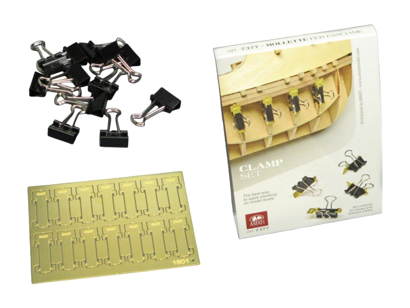 Praktická súprava 12 svoriek s držiakmi na jednoduché plachtenie drevených trupov. Svorky umožňujú bezpečné a presné pripevnenie lišty ku každému rebru počas lepenia.