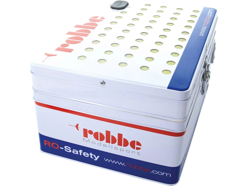 Bezpečnostné kovové puzdro je navrhnuté tak, aby minimalizovalo riziko spojené s nabíjaním a skladovaním batérií. Bezpečnostné priechodky pre vstup nabíjacieho kábla. Rozmery: 300x220x160 mm. Priestor pre 2 ks 6S LiPo akumulátorov.