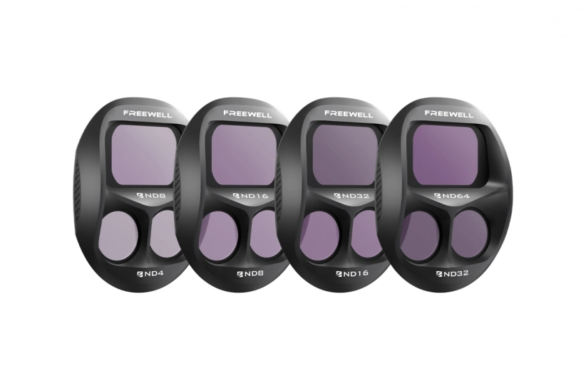 Sada štandardných denných ND filtrov Freewell (ND4, ND8, ND16, ND32) pre DJI Mavic 4 Pro. Pomáha eliminovať prepaly a zabezpečuje plynulé, prirodzené video aj pri jasnom dennom svetle.