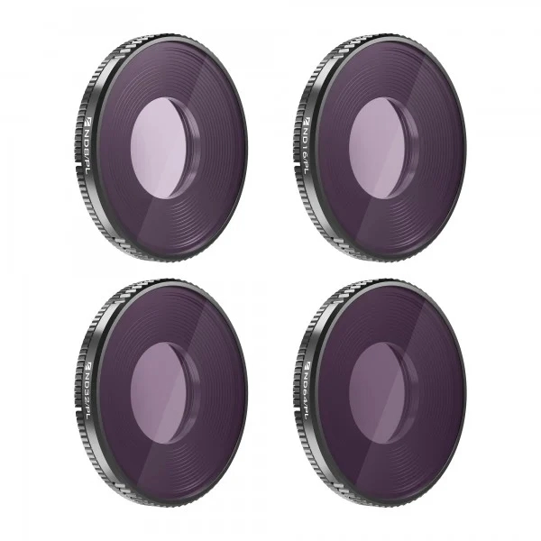 Sada štyroch filtrov Freewell pre kameru DJI Action 3. Sada obsahuje filtre ND8/PL, ND16/PL, ND32/PL a ND64/PL