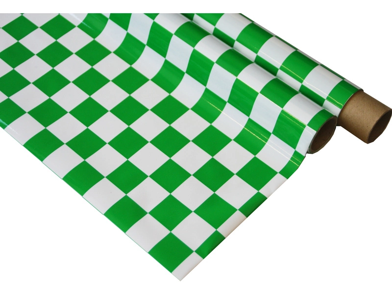 Kvalitná zažehľovacia károvaná bielo-zelená poťahová fólia na drevené a penové modely. Pracovná teplota 120 až 160 °C, zmrštenie fólie o 5 až 10 % rovnako vo všetkých smeroch! Veľkosť kocky: 25x25 mm.