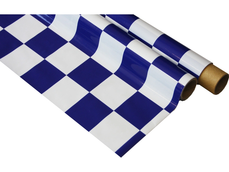 Cenovo dostupná vysokokvalitná nažehľovacia károvaná bielo-modrá poťahová fólia na drevené a penové modely. Pracovná teplota 120 až 160 °C, zmrštenie fólie o 5 až 10 % rovnako vo všetkých smeroch! Veľkosť kociek: 50x50 mm.