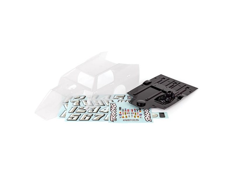Keleso Traxxas Slash Mudboss číre, upravené - vyžaduje lakovanie. Súčasťou je hárok samolepiek.