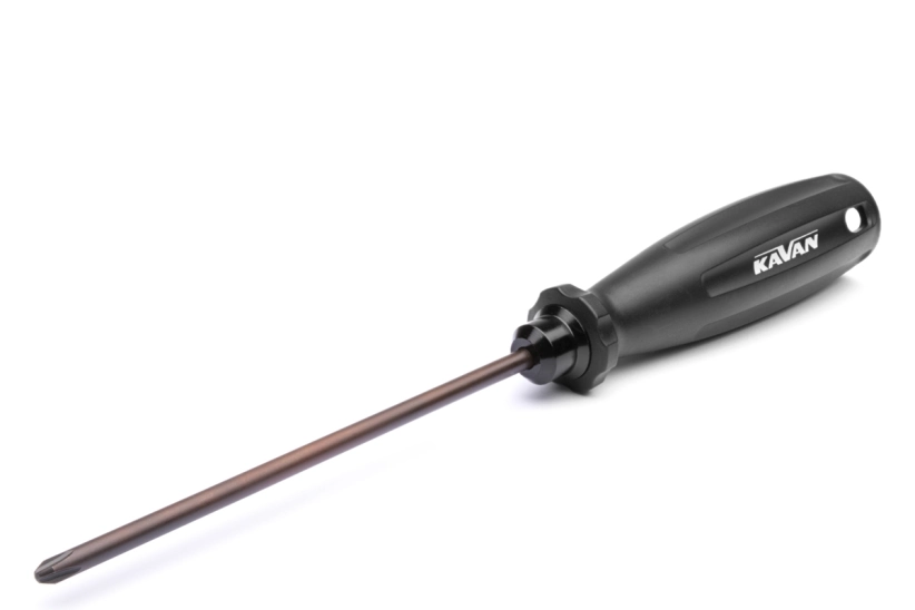 KAVAN krížový skrutkovač s ergonomickou protišmykovou a veľmi ľahkou plastovou rukoväťou. Veľkosť kľúča je vyznačená na hliníkovej vložke rukoväti.