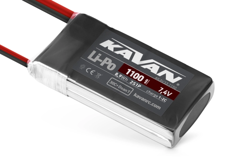 Sada LiPo batérií KAVAN s nabíjaním do 2C a vybíjaním 30/60C. Dvojčlánok 2s1p 7,4 V 1100 mAh, rozmery: 65x35x13mm, hmotnosť 53g, servisný konektor JST-XH.