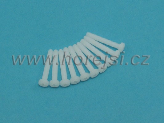 Přesný kříový žgag s vypuklou hlavou je vyrobený z hrubého polyamidu. Závit M3, dĺžka závit 25 mm.