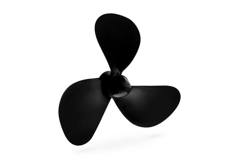 Trojlistá lodná skrutka na montáž pod loď, rozstup 0,53x priemer, plast plnený sklenými vláknami, závit M2.