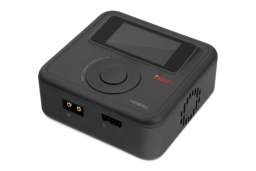 Miniatúrna nabíjačka ISDT 405AC 60 W je inteligentná nabíjačka s napájaním zo siete a veľmi jednoduchým a prehľadným ovládaním. Model 405AC dokáže nabíjať a vybíjať bežné typy článkov (NiMH, LiPo, LiHV/ULiHV, LiFe, Li-ion, Pb), navyše je vybavený vstavaným štvorkanálovým balancerom, ktorý zabezpečuje bezpečné nabíjanie lítiových batérií. Nabíjačka je vybavená farebným LCD displejom a tromi programovacími tlačidlami, ktoré vám poskytujú možnosť pohodlného a prehľadného nastavenia parametrov, kontroly a monitorovania procesu nabíjania.