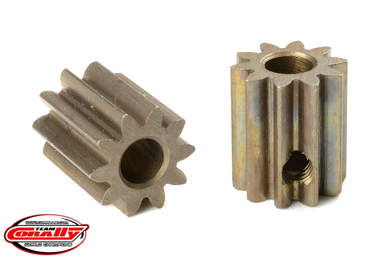 Krátke vyhotovenie, materiál tvrdená oceľ, 10 zubov, modul ozubenia 0.6M. Na hriadeľ motora s priemerom 3,17 mm (1/8 in). Pastorky TEAM CORALLY sú vyrábané frézovaním a následne tvrdené, čím je zaistená vysoká presnosť ozubenia. Všetky pastorky TEAM CORALLY sú vyrobené v EÚ.