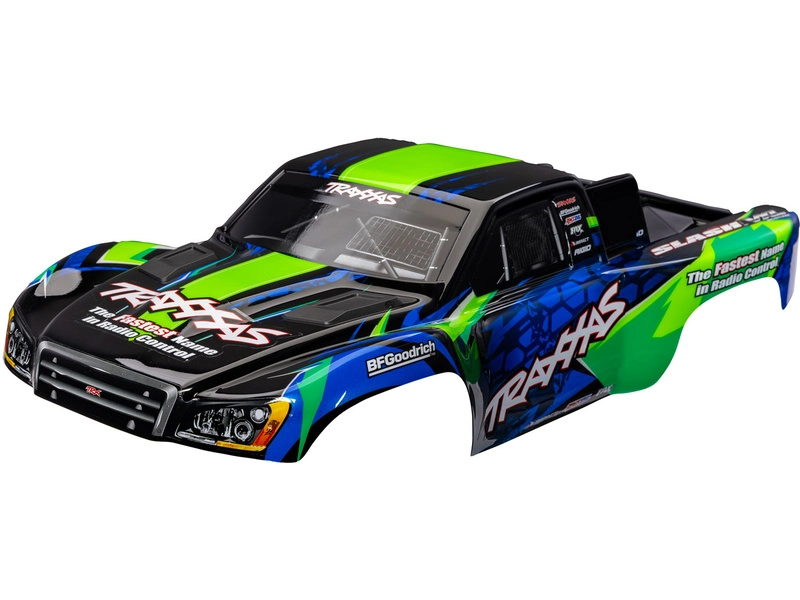 Náhradný diel pre modely RC áut Traxxas Slash 2WD VXL a 4WD: zelenomodrá karoséria bez pružín. Hotové sfarbenie ProGraphix® s vopred nanesenými obtlačkami. Zmontovaná karoséria s prednými a zadnými bezpružinovými západkami.