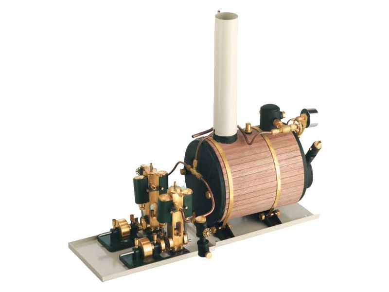Parný stroj obsahuje niekoľko komponentov, ktoré pomáhajú vášmu modelu plávať efektívne, účinne a ekologicky. Piestový motor sa spája prostredníctvom kardanovej spojky s hriadeľom vrtule. Ide o dva kmitajúce dvojvalcové motory, ktoré možno ovládať pre jazdu dopredu, dozadu a brzdenie, pričom možno regulovať aj veľkosť rýchlosti v oboch smeroch. Ovládanie regulácie a chodu motora sa vykonáva pákou na motore, ku ktorej je pripojené servoregulátor.