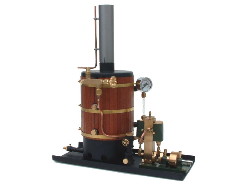 Parný stroj obsahuje niekoľko komponentov, ktoré pomôžu vášmu modelu plávať efektívne, účinne a ekologicky. Piestový motor sa spája prostredníctvom kardanovej spojky s hriadeľom vrtule. Ide o kmitavý dvojvalcový motor, ktorý možno ovládať pre jazdu vpred, vzad a zastavenie, pričom možno regulovať aj veľkosť rýchlosti v oboch smeroch. Ovládanie regulácie a chodu motora sa vykonáva pákou na motore, ku ktorej je pripojené servoregulátor.