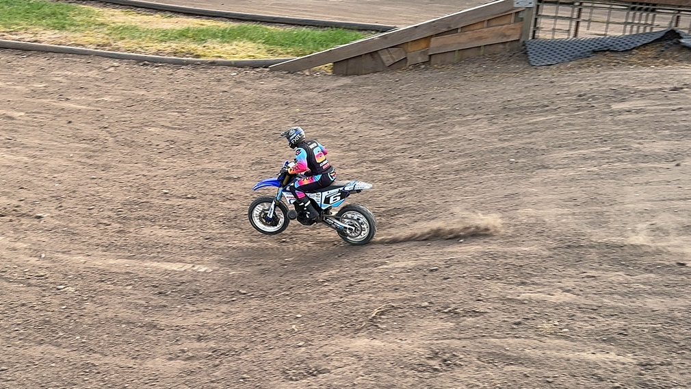 Posledným terénom, na ktorom sa motorka prešla, bola dráha. Jazdu na dráhe treba natrénovať, nie je úplne ľahké motocykel na nej udržať. Ak sa zabrzdí neskoro, motocykel zákrutu nezvládne. Naopak, pri prudšom zabrzdení motorka spadne. Na takomto prašnom povrchu sa model nie je schopný zdvihnúť na zadné koleso. Je tu však opäť možnosť zaobstarať si špeciálne pneumatiky určené priamo na jazdu po dráhe.
