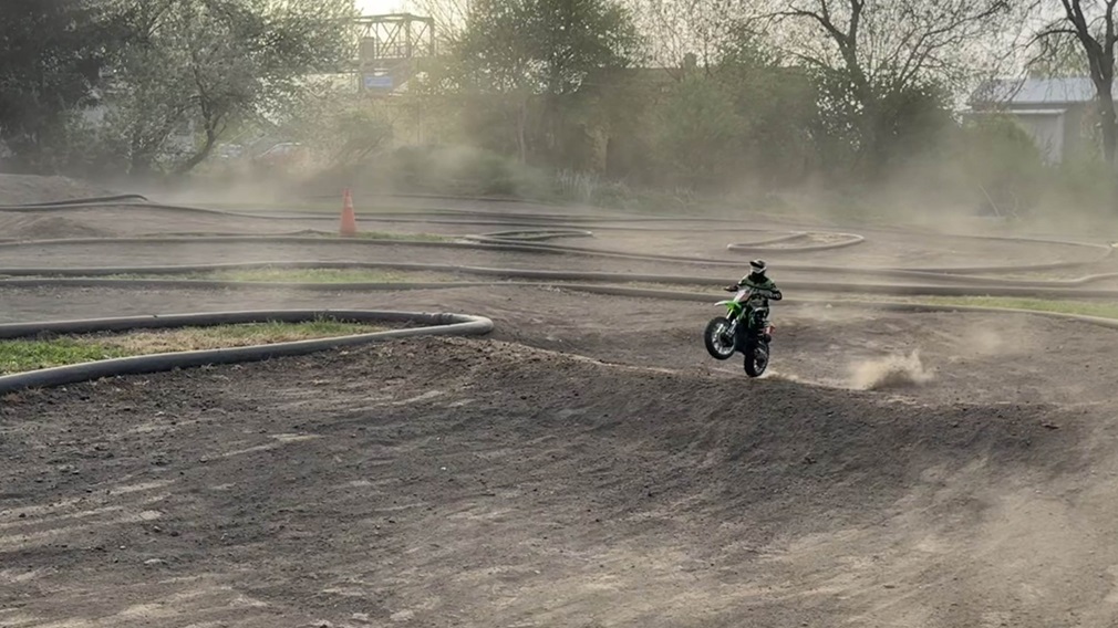 Najskôr sa jazdilo po trávniku. Na jazdu sa zvolil režim Wheelie. Motocykel mal pekný grip a ľahko sa v menších rýchlostiach zdvíhal na zadné koleso. Vo väčšej rýchlosti už mal problém sa zdvihnúť. Bohužiaľ, na to nemá dostatočný výkon. Pri páde na bok sa väčšinou vždy dokázal znova sám rozbehnúť.