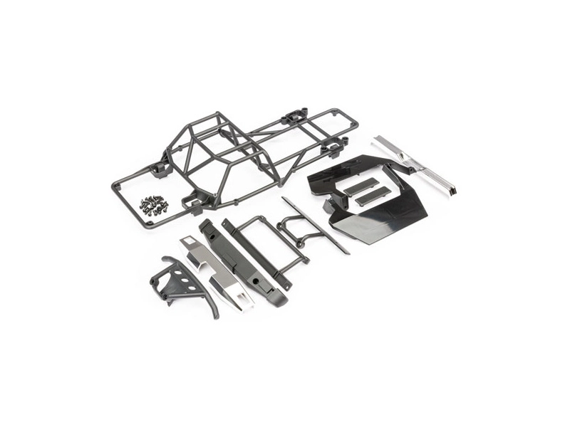 Náhradný diel pre RC modely áut Traxxas Bigfoot 1:10 4WD: príslušenstvo karosérie (pre #9020). Obsahuje nosič karosérie, predný a zadný nárazník, držiaky nárazníka, bočné prahy a montážne príslušenstvo.