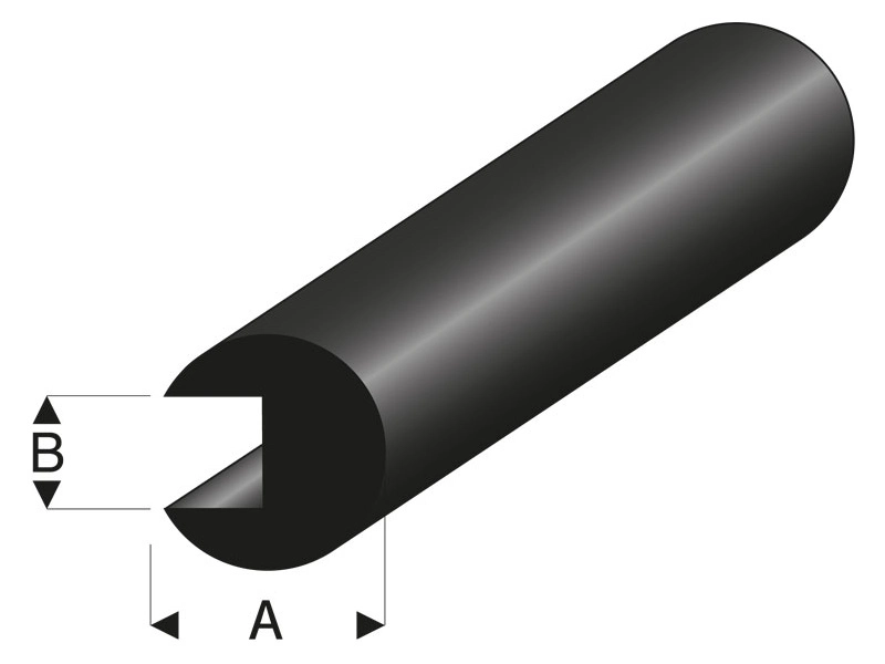 Raboesch gumový profil na ochranu hrán má priemer 8 mm, drážka 2 mm, dĺžka 2 m, tvrdosť 60 Shore. Môže sa použiť ako ochrana hrán alebo soklová lišta. Vďaka tvaru drážky sa guma veľmi dobre prispôsobuje tvarom.