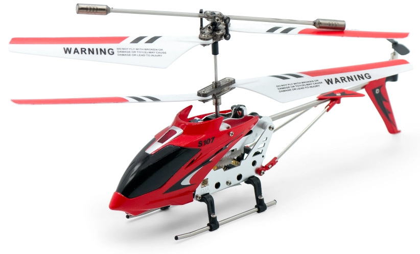 S107G vyniká predovšetkým stabilitou a kovovou konštrukciou. Rotorové časti modelu sú veľmi odolné. Model nie je potrebné nabíjať z ovládača, je totiž vybavený USB nabíjačkou. Vďaka elektronickému gyroskopu je veľmi stabilný a svojou veľkosťou sa hodí do priemerne veľkého interiéru. Pozor na lacnejšie kópie toho vrtuľníka, prípadne staršie verzie, nami ponúkaný model je poslednou verziou s označením G = SYMA S107G. Gyroskop u tohto modelu je lepší, než u predchádzajúcej verzie a je teda ešte stabilnejší.