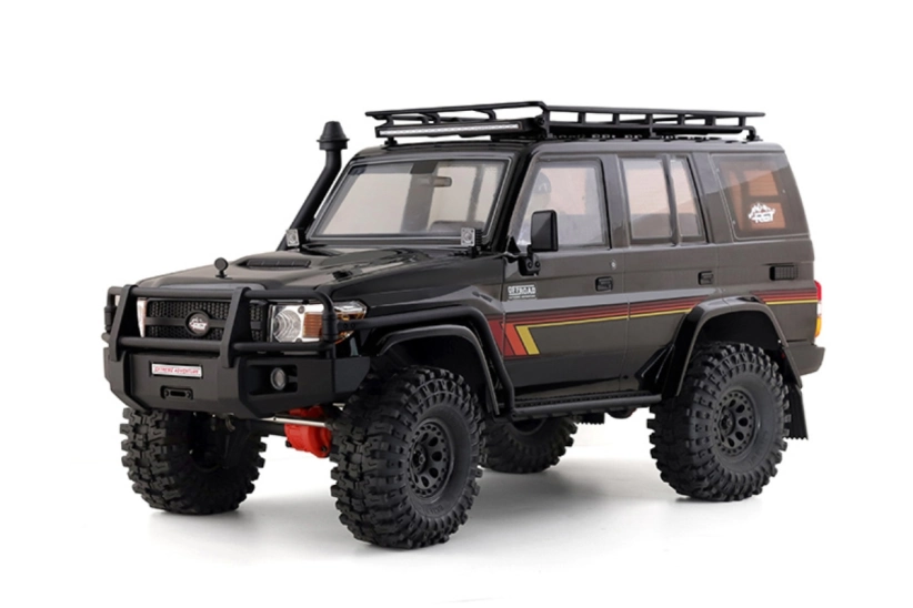 Kompletne zostavený RC crawler/expedičný špeciál s jednosmerným motorom a vodoodolným regulátorom a silným servom riadenia pre pokročilých jazdcov. Model je vybavený portálovými nápravami, 2-rýchl. prevodovkou, uzam. predným a zadným diferenciálom, LED modulom a pod. Súprava vrátane 6-kanálovej 2,4 GHz RC súpravy. Bez pohonného akumulátora a nabíjačky. Čierna karoséria.