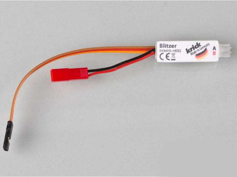 Blikačový svetelný modul vhodný na pripojenie k LED a iným svietidlám. Rýchlosť záblesku možno vypnúť, zapnúť alebo ju môžete ovládať na proporcionálnom kanáli. Tento modul je vhodný na pripojenie k prijímačom.