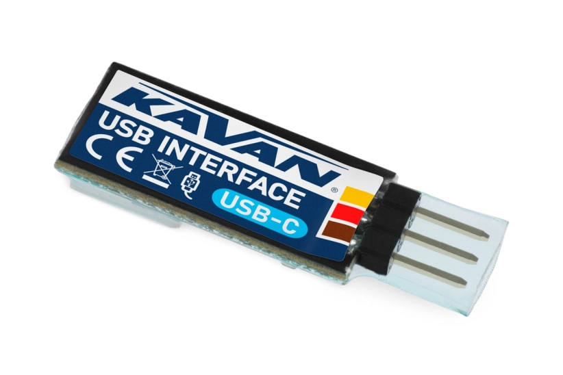 Rozhranie USB na nastavenie, načítanie telemetrických údajov (vrátane online zobrazenia telemetrie na PC) a aktualizáciu firmvéru kompatibilných zariadení KAVAN Smart PRO a MAV Sense pomocou PC. Konektor USB typu C. Rozmery 33x12x6 mm, hmotnosť 2 g, napájanie 5 V z PC.