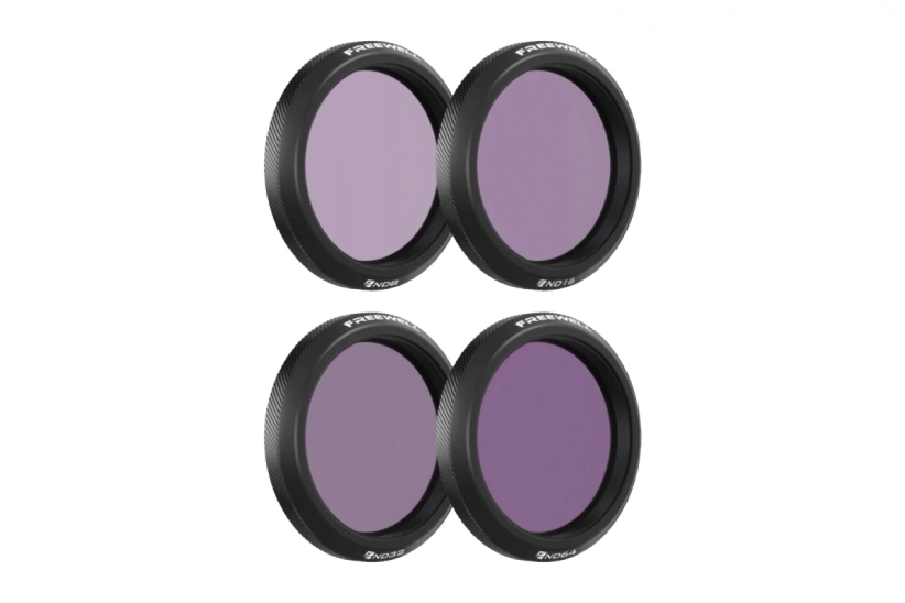 Sada štyroch filtrov Freewell pre akčnú kameru DJI Osmo. Sada obsahuje filtre ND8/PL, ND16/PL, ND32/PL, ND64/PL.