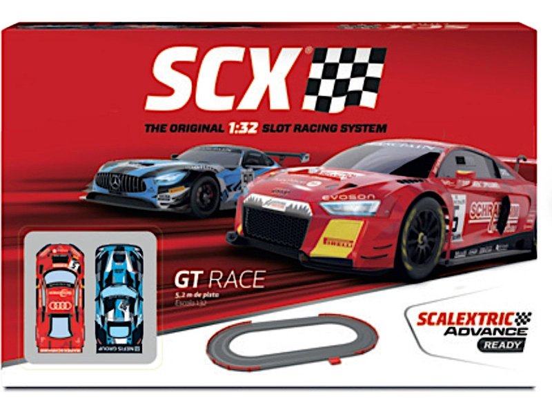 Autodráha SCX Original GT Race v klasickej mierke 1 : 32 na napínavejšie preteky – analógová autodráha v tvare oválu s ochrannými zvodidlami. Dva ergonomické ovládače a dve detailne vyhotovené dráhové autíčka Mercedes AMG GT3 – Nefis a Audi R8 LMS GT3 – Scherer. Plocha na rozloženie je 148 cm x 82 cm. Dĺžka trate je 3,33 m. Zloženie trate je veľmi jednoduché, jednotlivé traťové diely zacvaknete do seba, pripojíte ovládače a môžete začať pretekať.