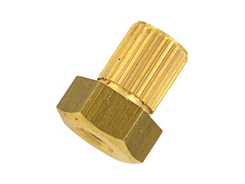Výstup 1/4" UNF, dĺžka vložky približne 5,5 mm, celková dĺžka približne 15 mm, maximálny priemer približne 13 mm, materiál mosadz.