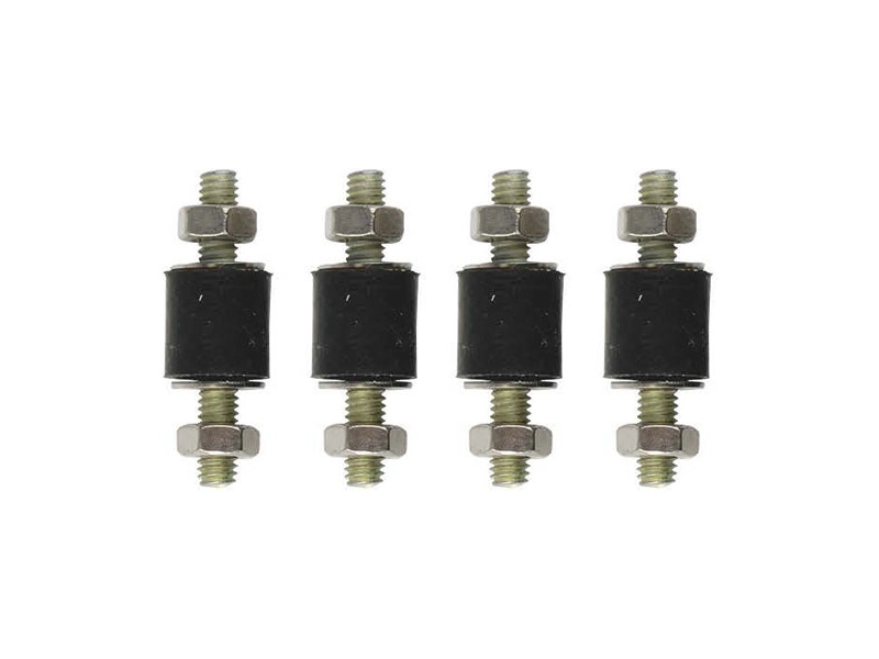 Tlmič vibrácií Raboesch, rozmery tlmiča 10x10 mm, skrutky M4x10, podložky a matice (4 ks). Tlmič umožňuje flexibilné a pevné pripojenie komponentov, ako sú dosky elektroniky, motor, regulátor atď.