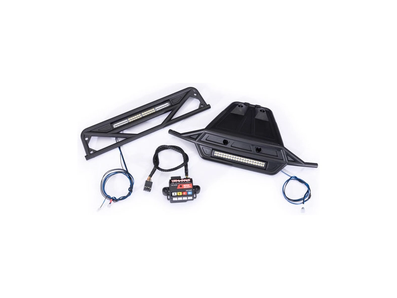 Kompletné LED osvetlenie Traxxas pre RC model auta Traxxas Maxx Slash 1:8. Posuňte tento brutálny, svižný model na vyššiu úroveň a vychutnajte si úchvatnú jazdu vo dne aj v noci. Predná LED lišta v nárazníku bezpečne osvetľuje cestu pred vami, zatiaľ čo zadná brzdová lišta dodáva modelu šmrnc. Funkčné brzdové svetlá sa totiž zapínajú len pri brzdení, a nie pri cúvaní. Jednotlivé svetelné lišty stačí pripojiť k riadiacej jednotke a riadiacu jednotku k ovládaču. Všetko je jednoduché, intuitívne a vodotesné*.