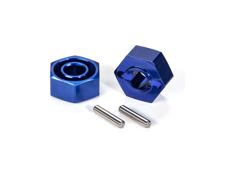 Hliníkový namodro eloxovaný náboj kolesa, šesťhran 12 mm, otvor na hriadeľ s priemerom 5 mm.