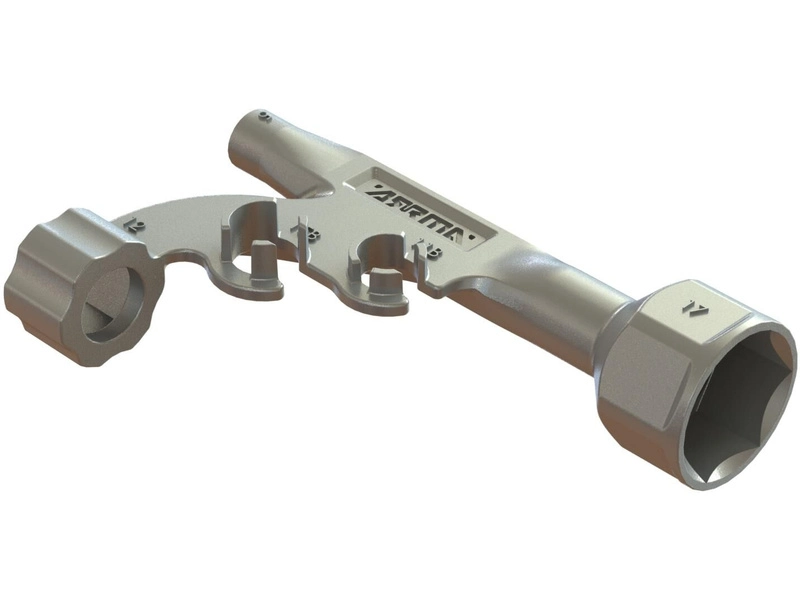 Univerzálny kovový kľúč Arrma 5/7mm, 11/15mm, pre automobily Arrma na matice a tesniace puzdrá tlmičov, na montáž 5mm, 7mm a 12mm matíc. Kľúč 12 mm možno použiť na nastavenie trecej spojky na 4WD. Odporúča sa pre vozidlá BIGROCK, GRANITE, SENTON, TYPHON, VORTEKS.